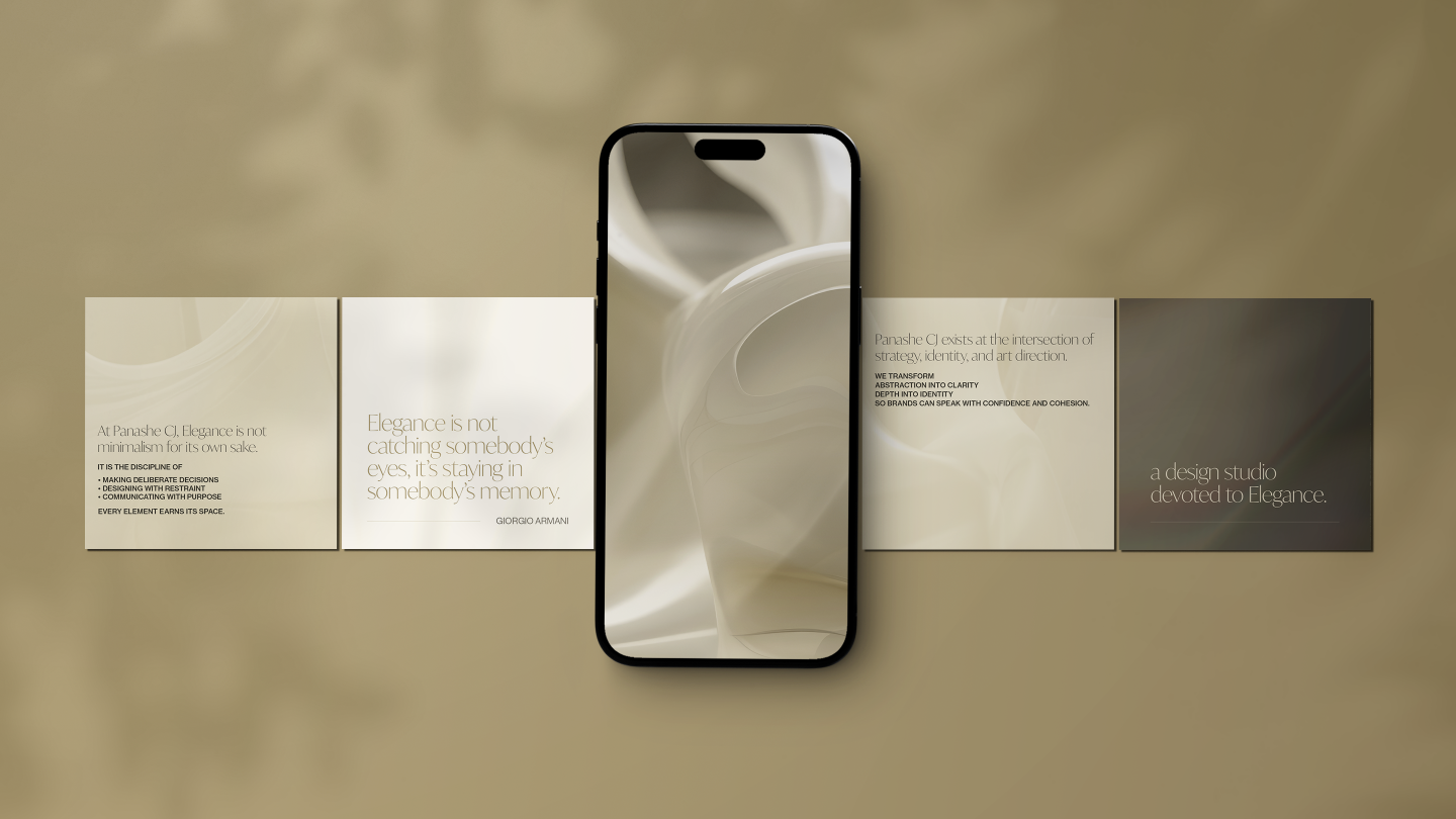 Panashe CJ is a brand design practice grounded in Elegance as a working principle. The focus is on building identities that communicate with clarity rather than excess.